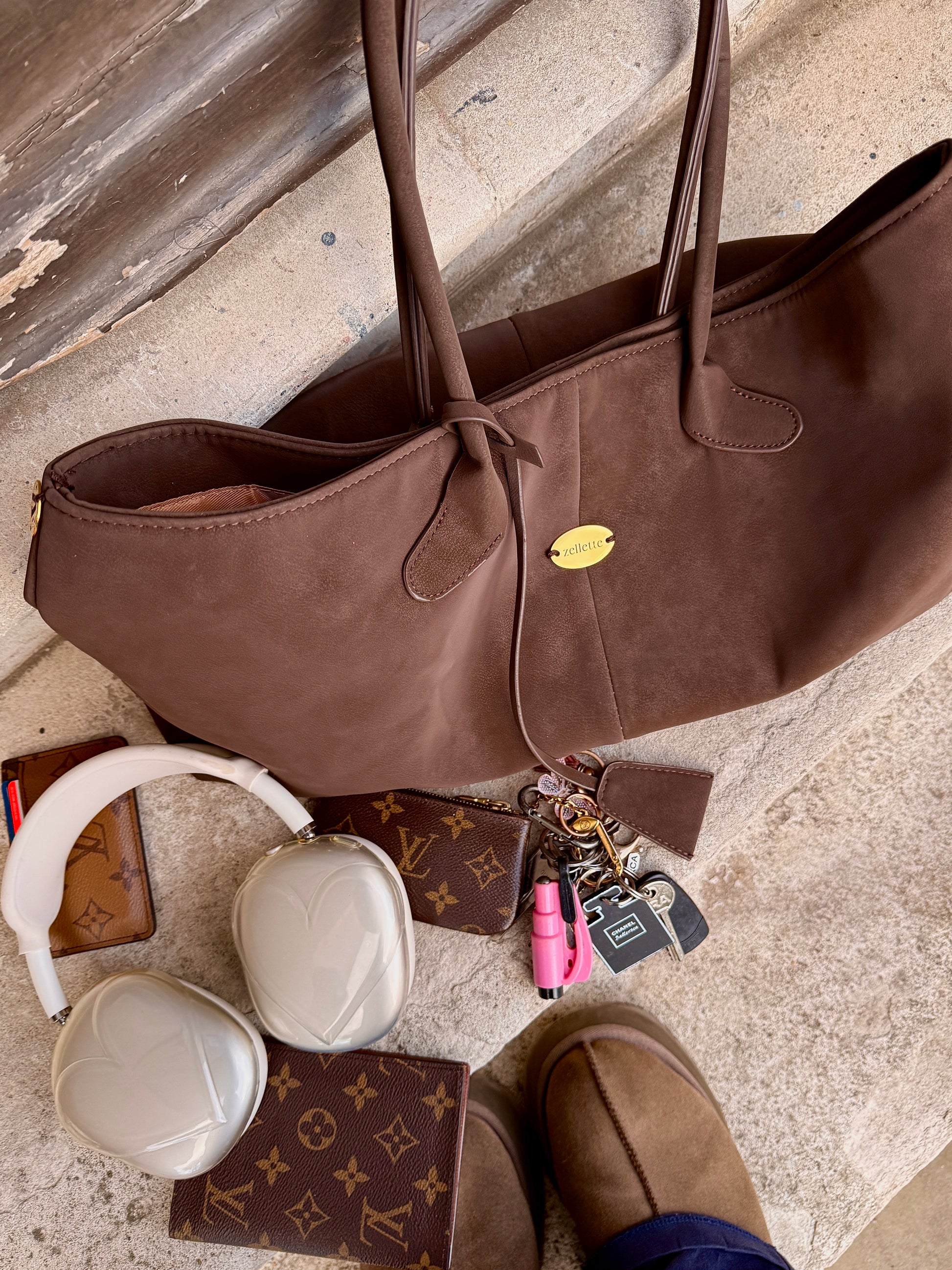 Effortlessly chic and endlessly practical, the Ovide Collection Tote is your ultimate everyday companion for the colder seasons. Crafted with a soft, structured suede finish and detailed with signature gold hardware, this spacious carryall blends timeless elegance with modern functionality.